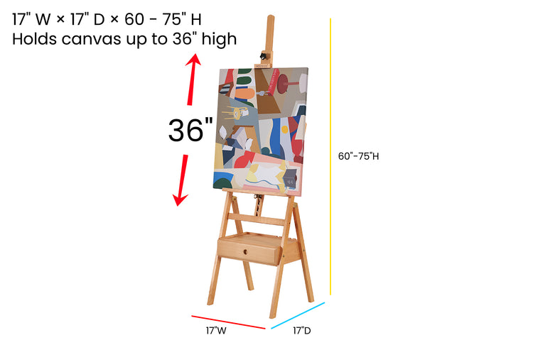 - Vertical Tilting Feature: This studio-style wooden easel stand tilts vertically, a feature that artists who paint on canvases find attractive because it brings the top of the canvas within closer reach. Pastel artists also appreciate this feature as it allows pastel dust to fall naturally away from the surface.