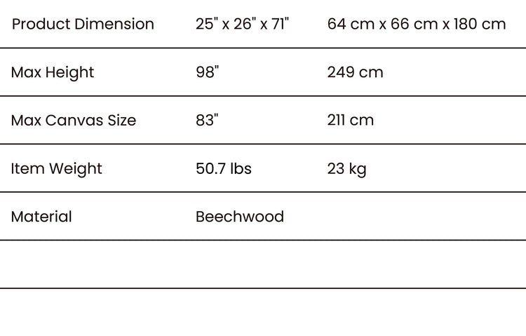 What surpasses the ordinary easel is not only the thickness of the wood but also upgraded the height adjustment method of the crank control. The maximum weight of the easel can be 41 kg/90lbs,the height can be easily adjusted by the crank not affected by item weight, and the maximum canvas height is 83".
