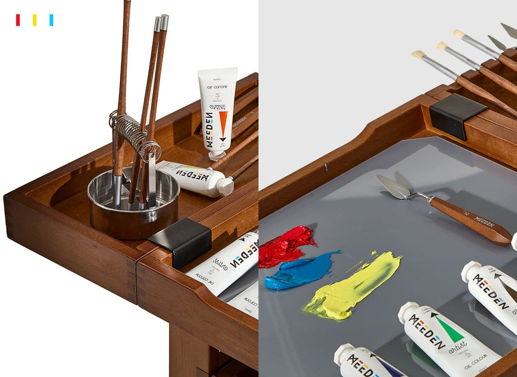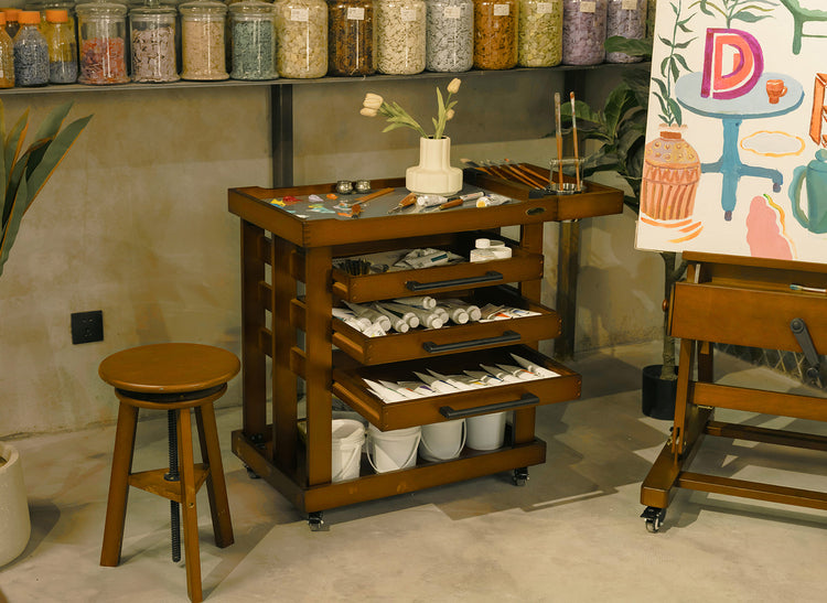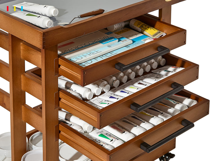 The three-tiered drawers are designed for effortless access, with smooth glides that make reaching your art supplies a breeze. Their spacious compartments provide ample room to store and organize your materials, ensuring a clutter-free workspace and enhancing your creative efficiency.