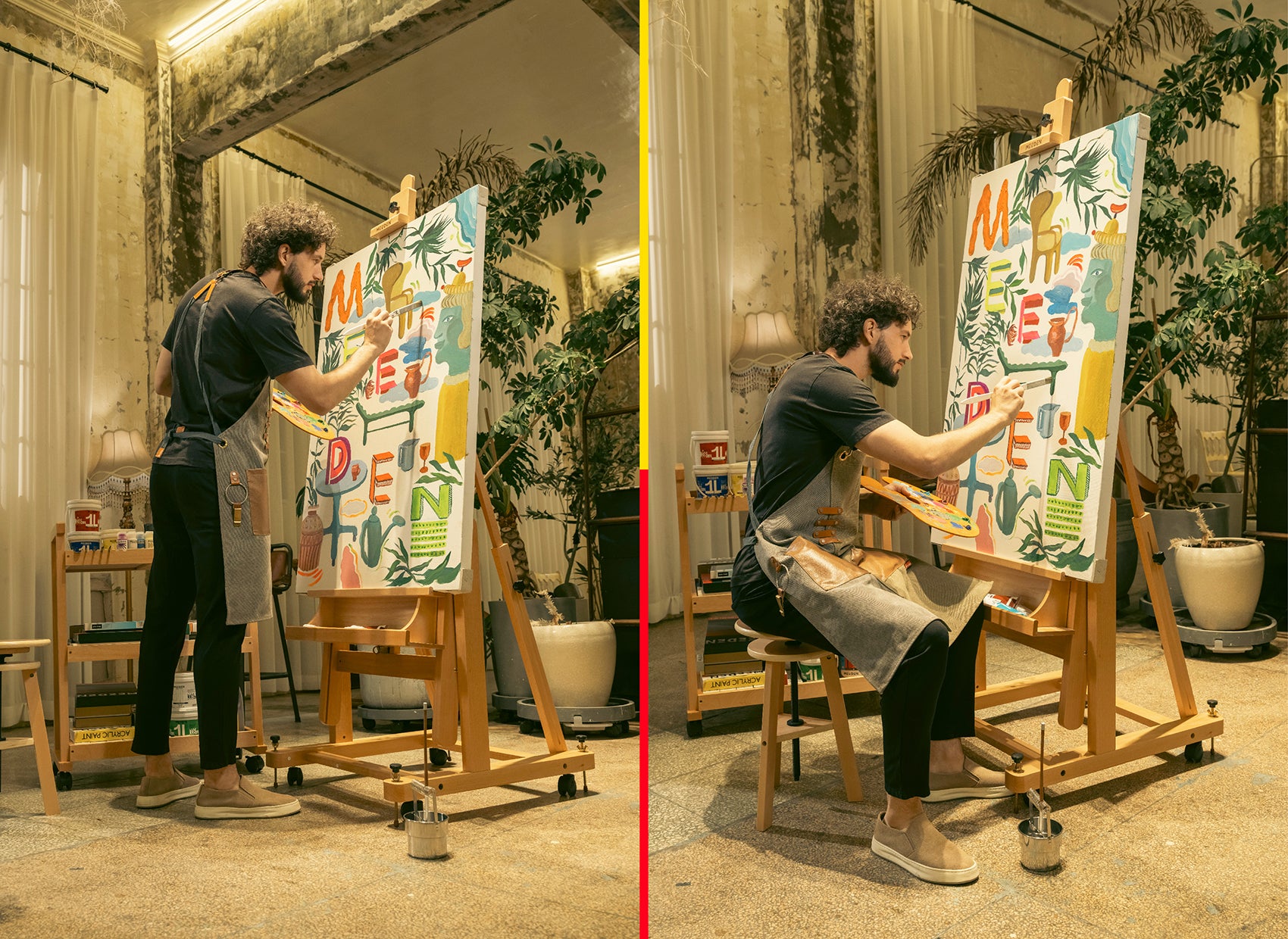Easily adjust the tray height from 10"-50" for comfortable painting while sitting or standing.
