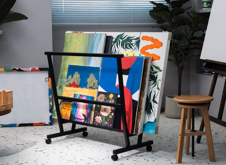 - Premium Materials: The MEEDEN art storage rack is crafted from high-quality metal and features a durable baking paint finish. This combination of excellent load-bearing capacity and refined craftsmanship makes it not only a functional piece but also a beautiful addition to any studio, providing secure storage for your artwork.
