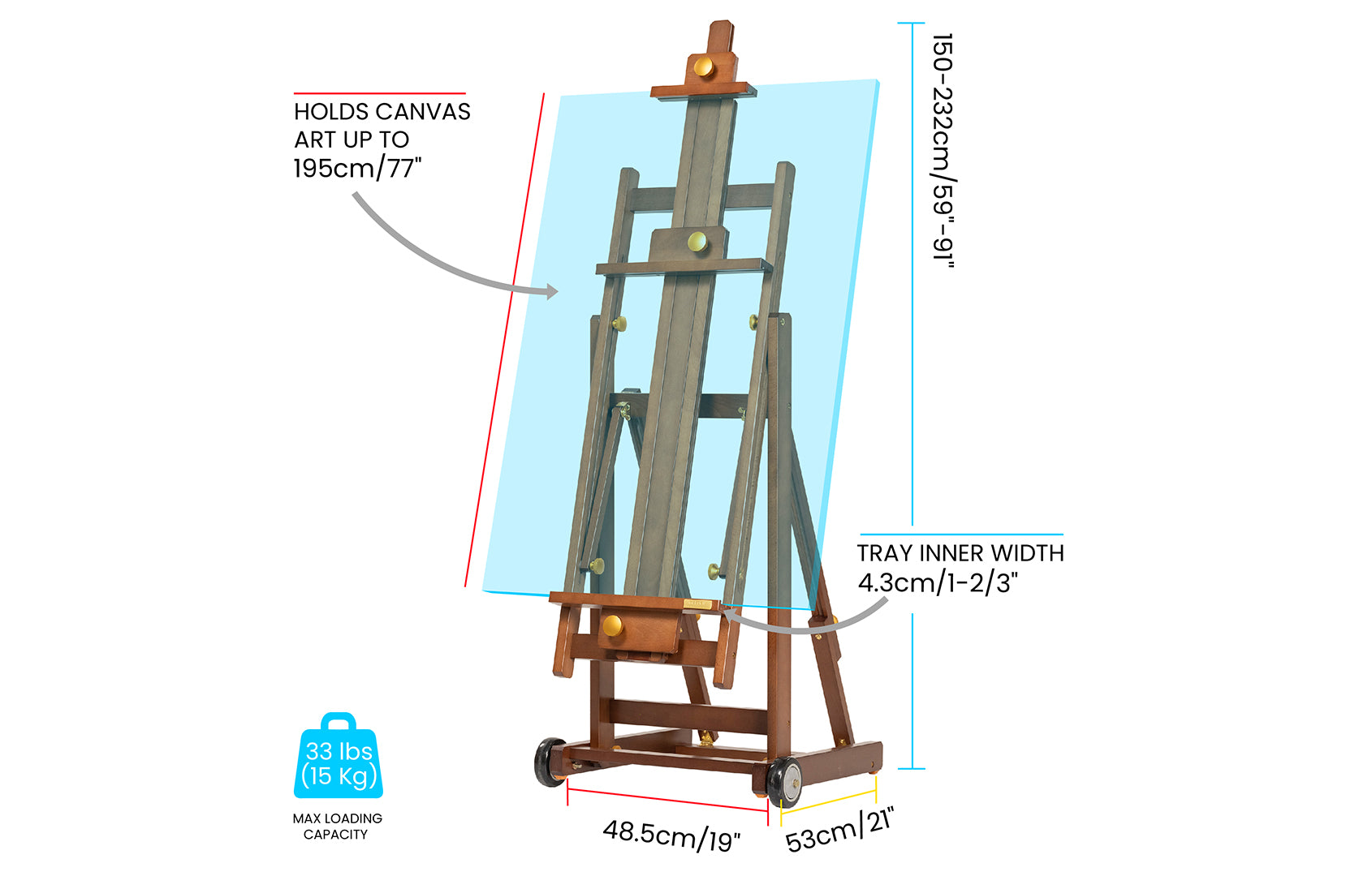 Suitable for painting on various sizes of canvas panels, with a maximum height of 77" (195cm), ensuring reliable support for both small canvases and large boards.
