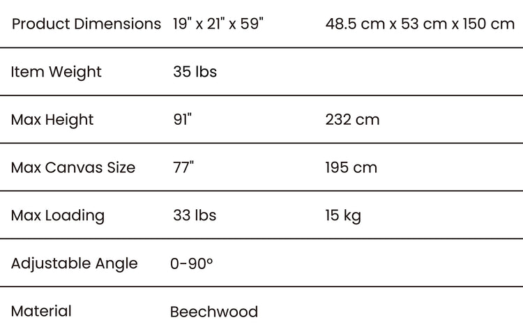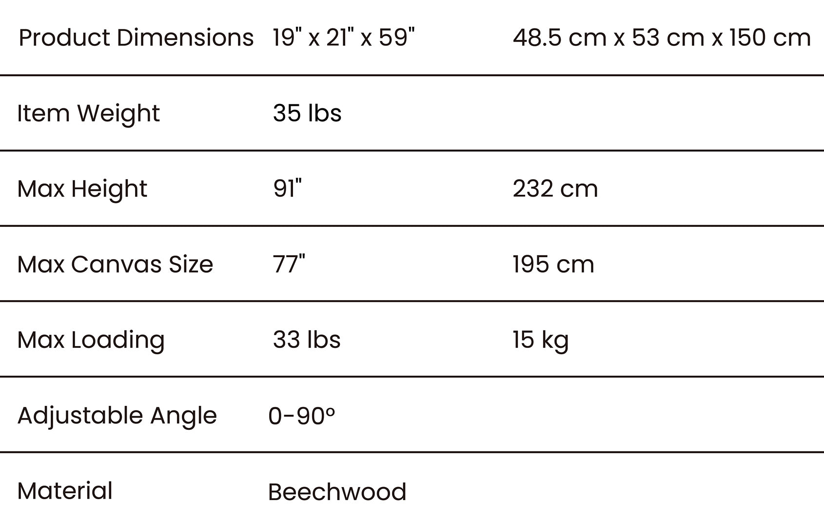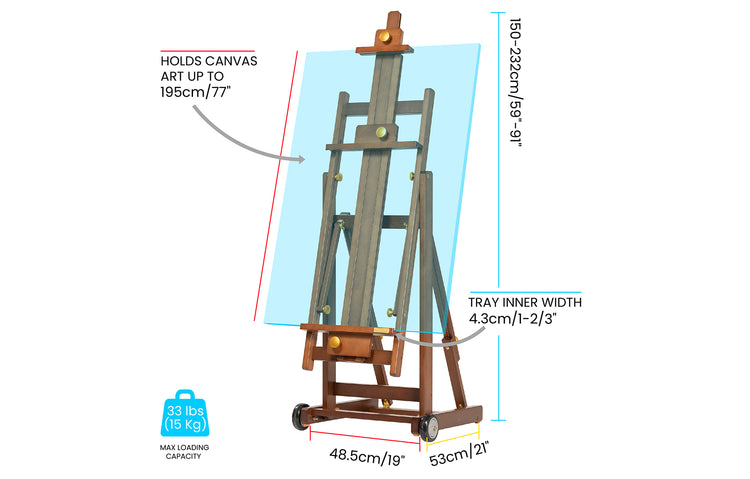 - Multi-Function H-Frame Easel: Constructed from solid beech wood, adjustable from 59" to 91", supports canvases up to 77".