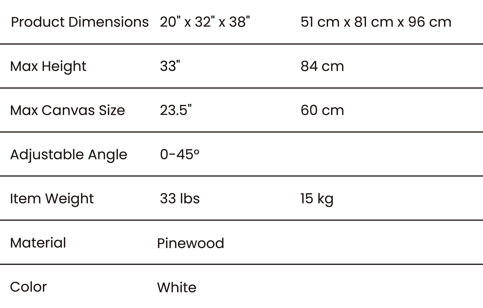 - Max Height: 33 in / 84 cm